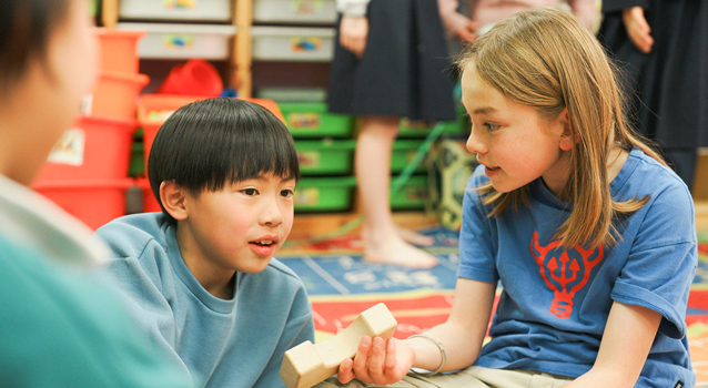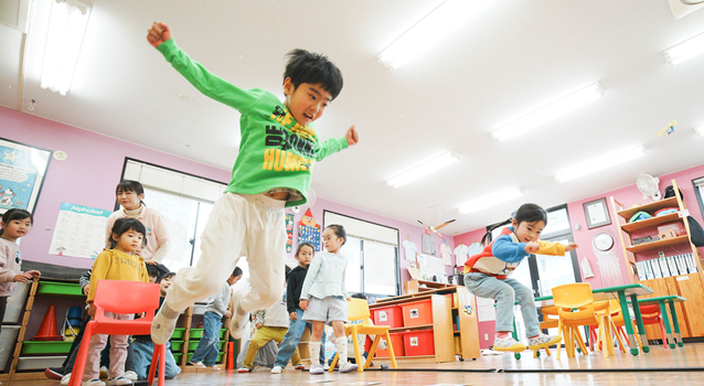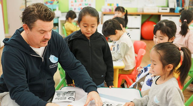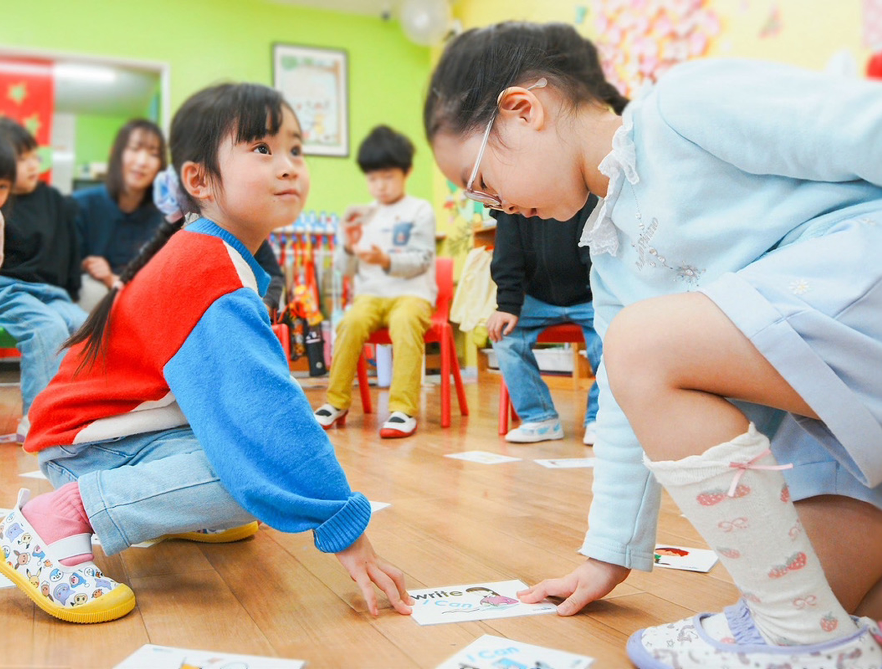 英語のシャワーを毎日たっぷり浴びる環境で、遊びながら自然に英語力と社会性が育ちます。
